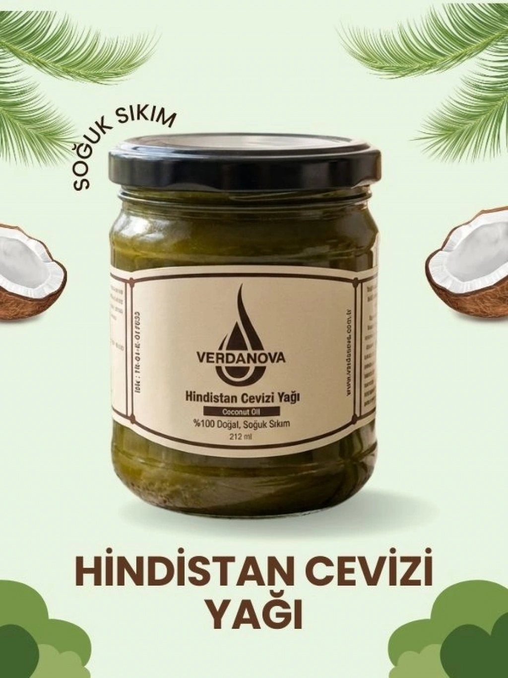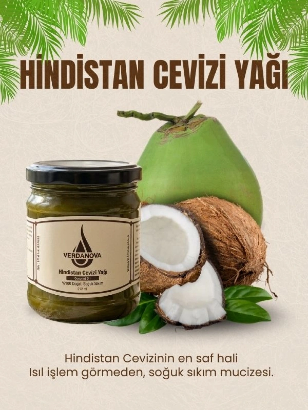VerdaNova %100 Soğuk Sıkım Hindistan Cevizi Yağı, Hindistan cevizlerinin düşük ısıda mekanik sıkım yöntemiyle elde edilen saf bir bitkisel yağdır. Ürün, katkı maddesi eklenmeden üretilmiş olup rafine edilmemiştir.