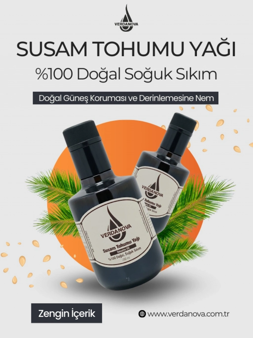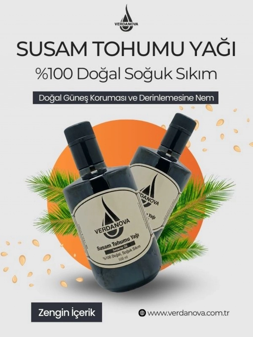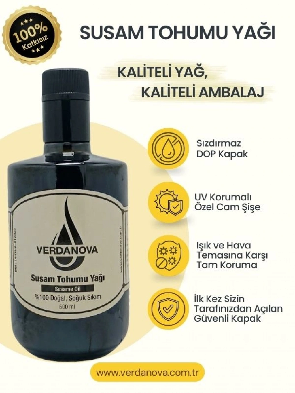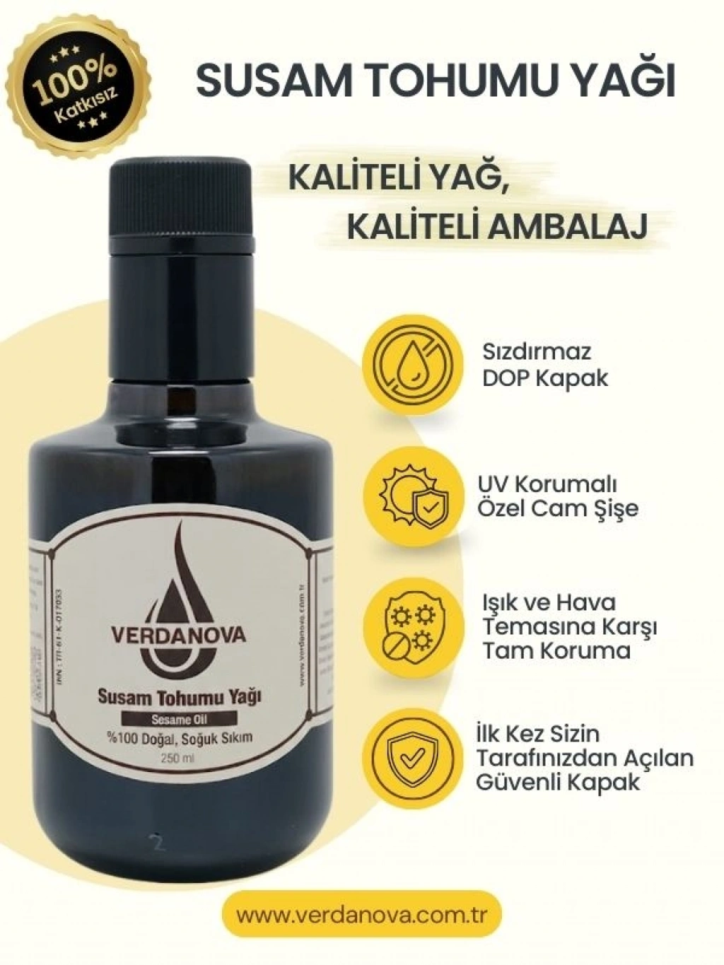 VerdaNova %100 Soğuk Sıkım Susam Yağı Omega 6-9 İçerir.